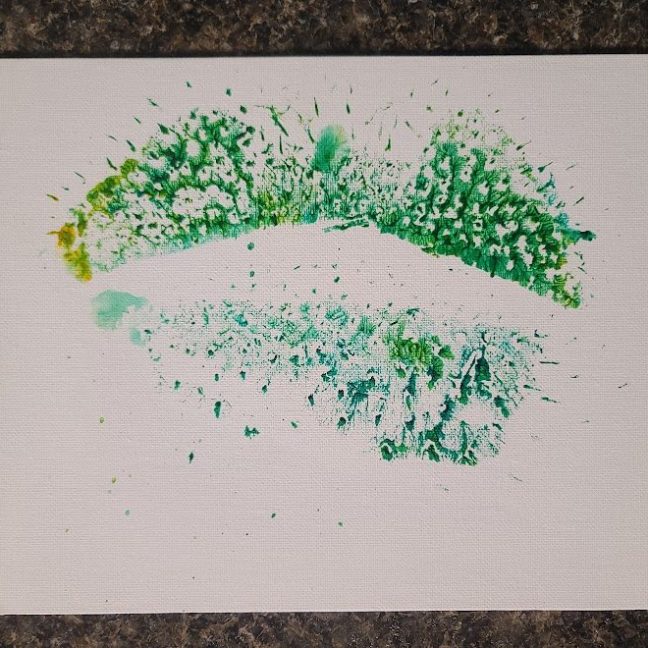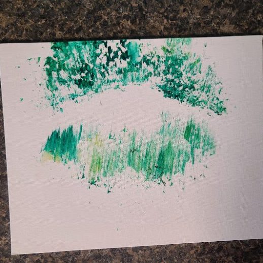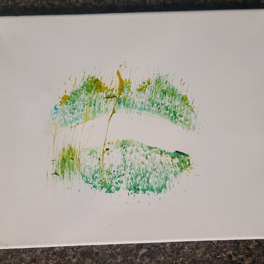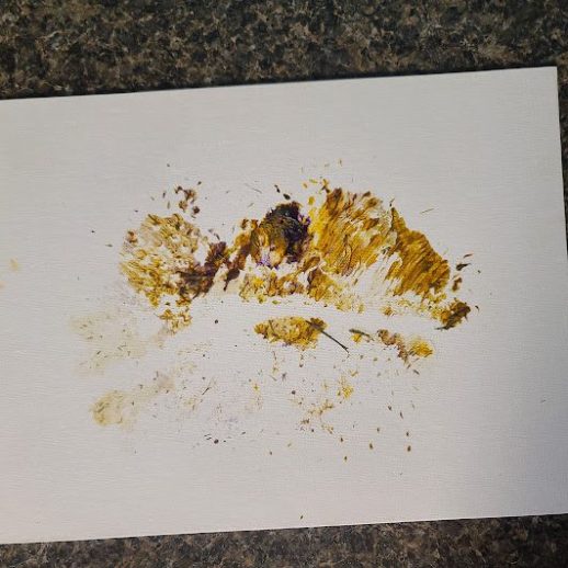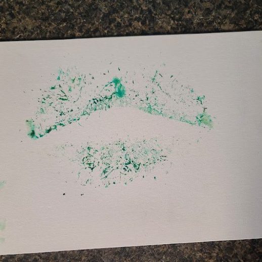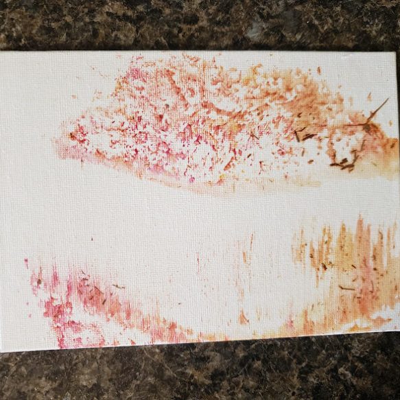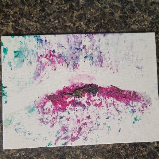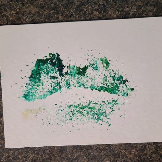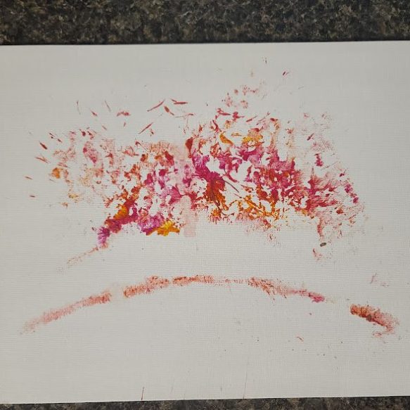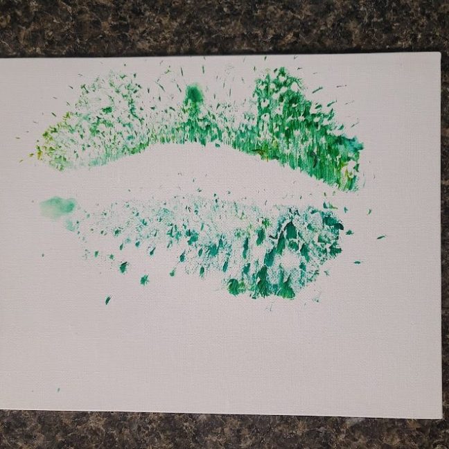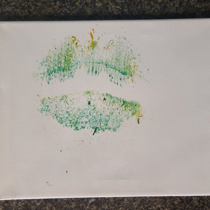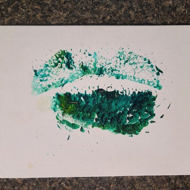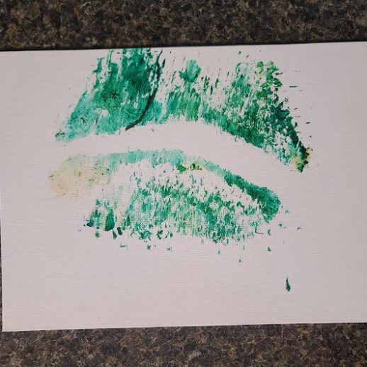 With a little bit of hay, a whisker smudge and a nostril print or two, here’s a big kiss from Karen the hippopotamus. Using behaviors she’s learned for health care exams, Karen holds still while trainers apply her lipstick of paint. Next comes the big smooch on the canvas.