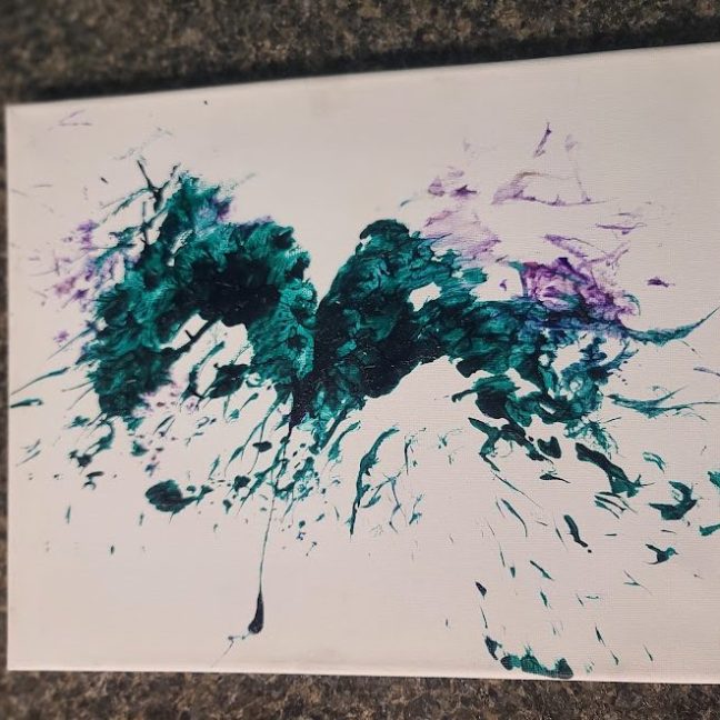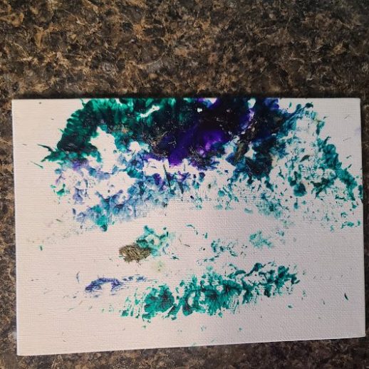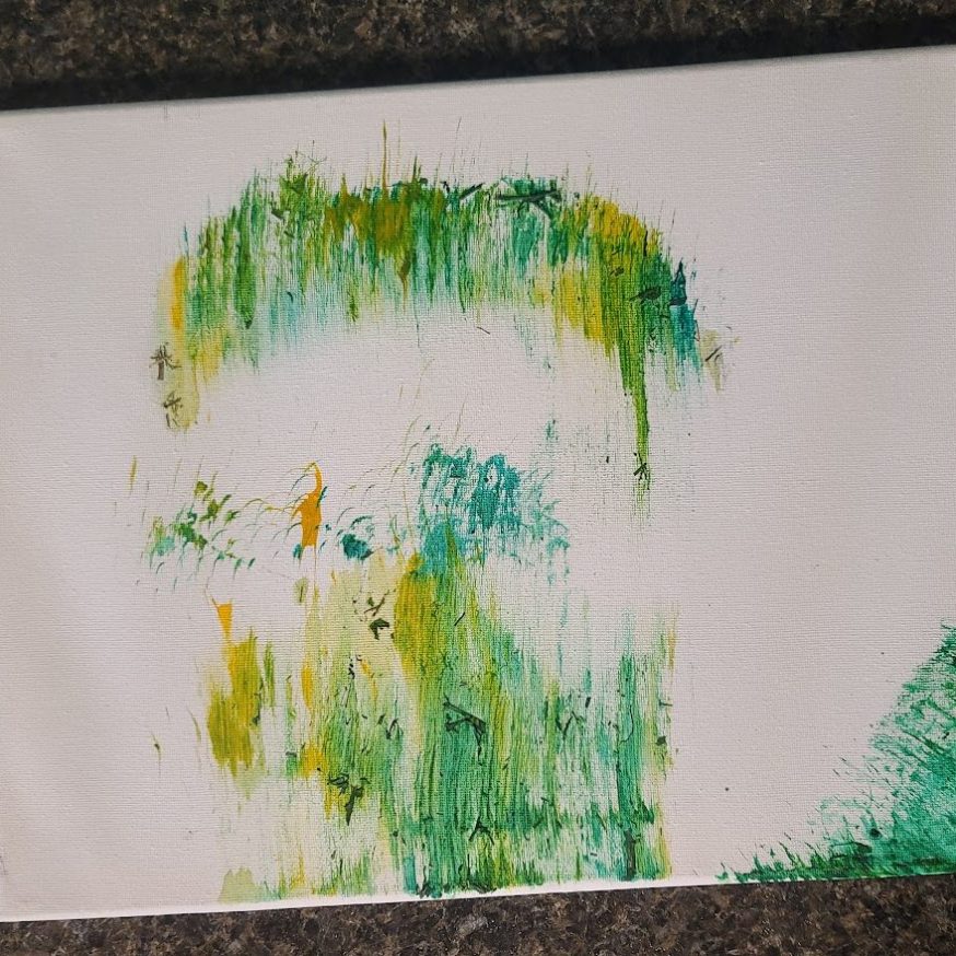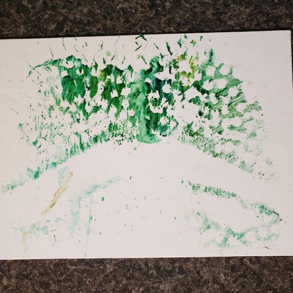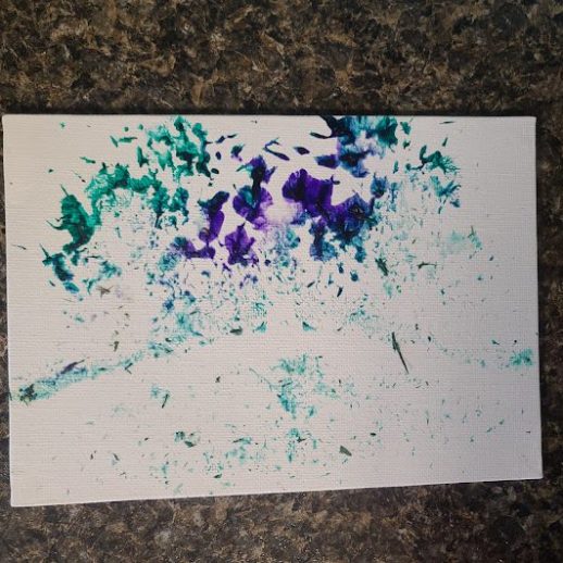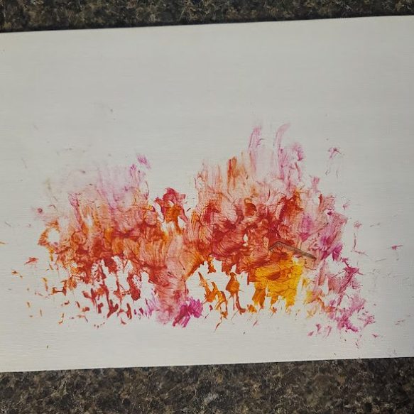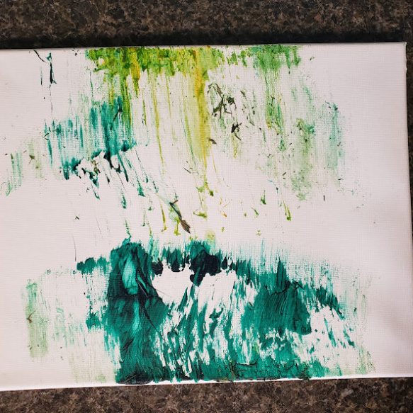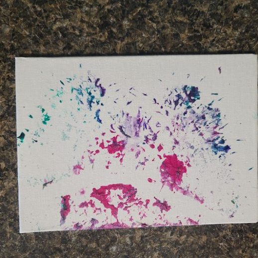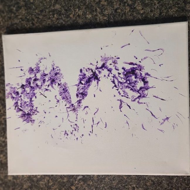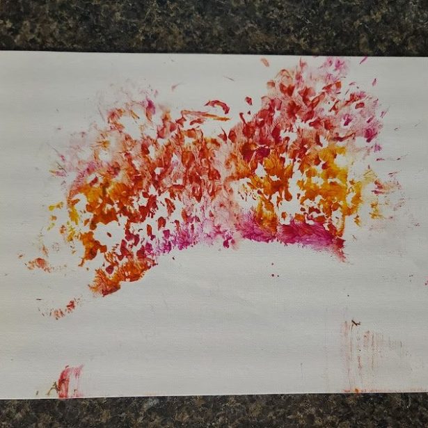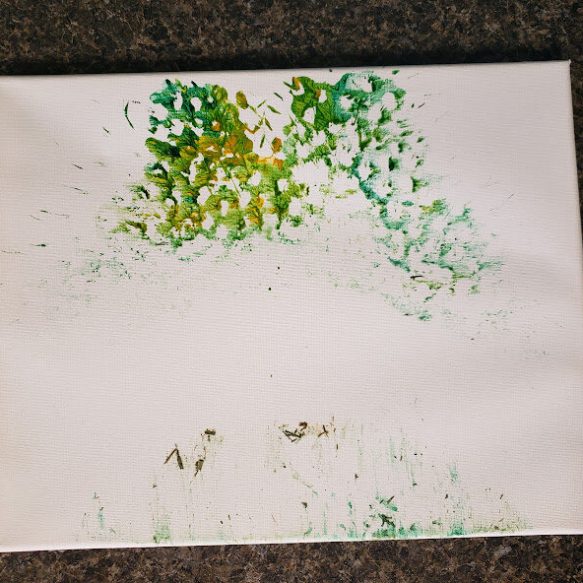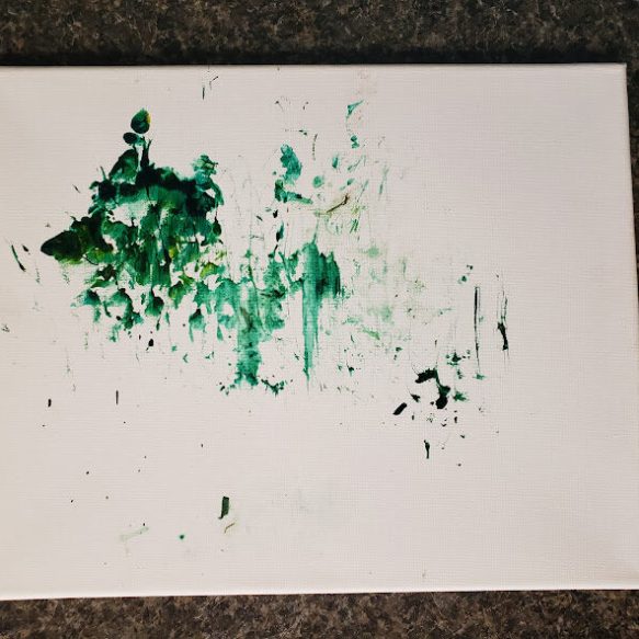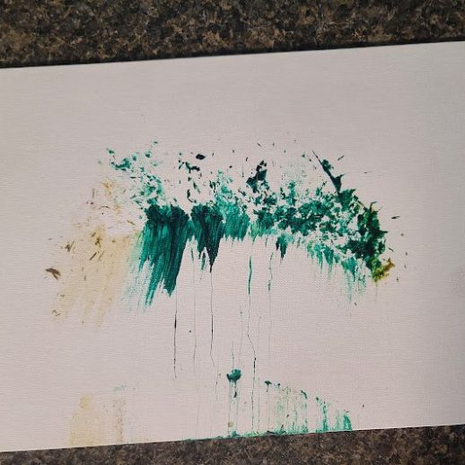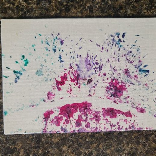 With a little bit of hay, a whisker smudge and a nostril print or two, here’s a big kiss from Karen the hippopotamus. Using behaviors she’s learned for health care exams, Karen holds still while trainers apply her lipstick of paint. Next comes the big smooch on the canvas.